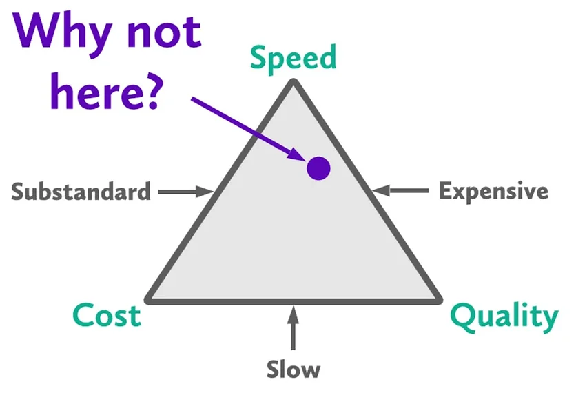 그래서 속도, 퀄리티, 가격 중에 포기하는 것이 아니라 적정한 위치를 찾아내는 것이 필요하다