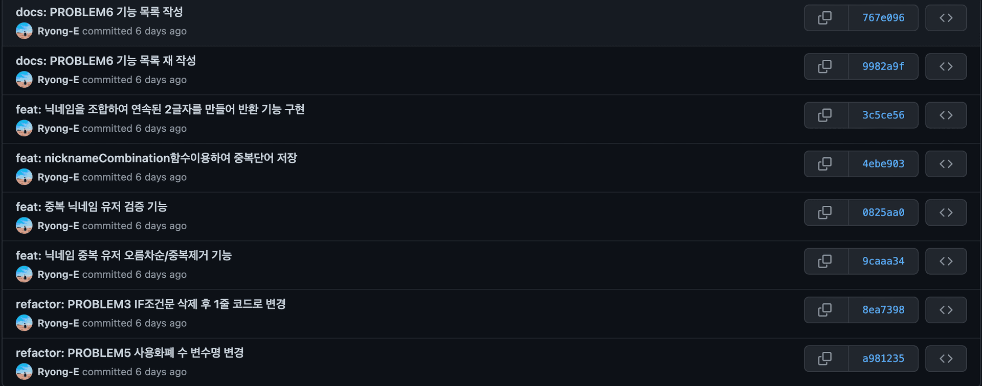 커밋을 남기는 것도 기능별로 나누어 하는 것이였지만 제가 잘 못 이해를 했는지 하나의 기능에 필요한 로직 하나당 커밋을 하였는데