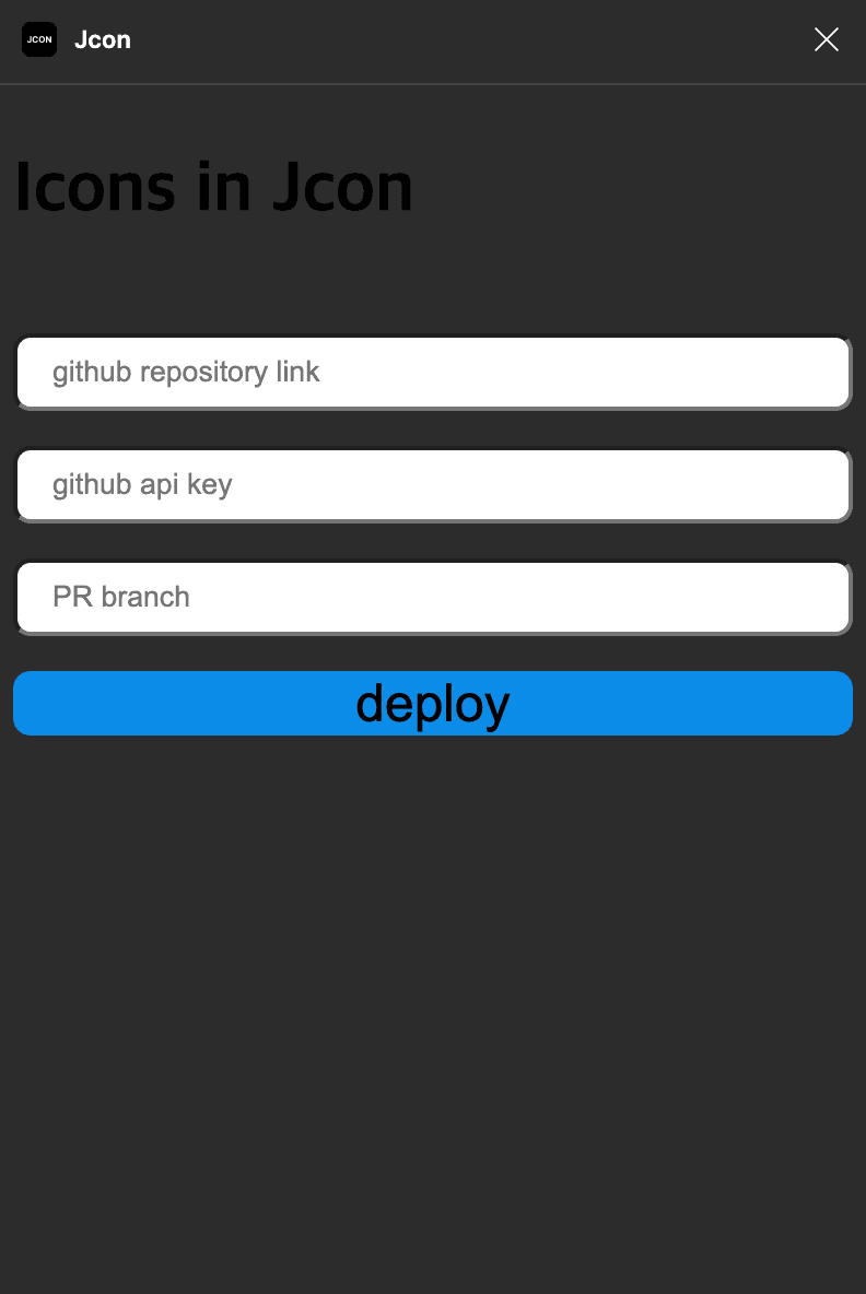 아이콘을 Jcon 프레임에 정의해두고 Deploy를 하게 되면 브랜치를 생성하고 커밋후에 PR요청이 가도록 하였습니다.