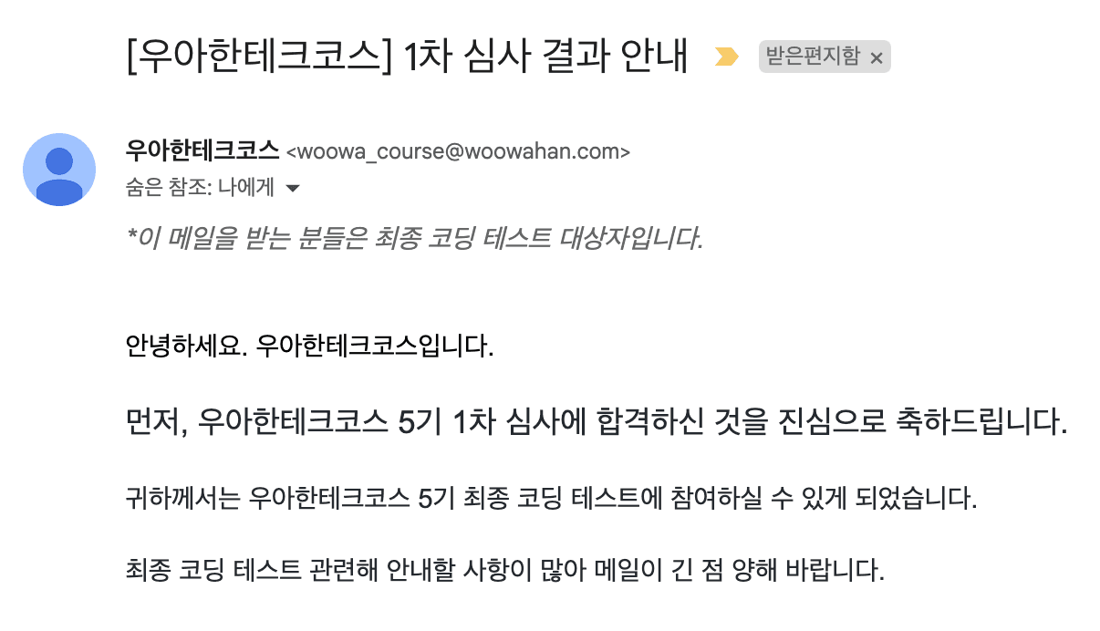 우아한 테크코스 1차 합격