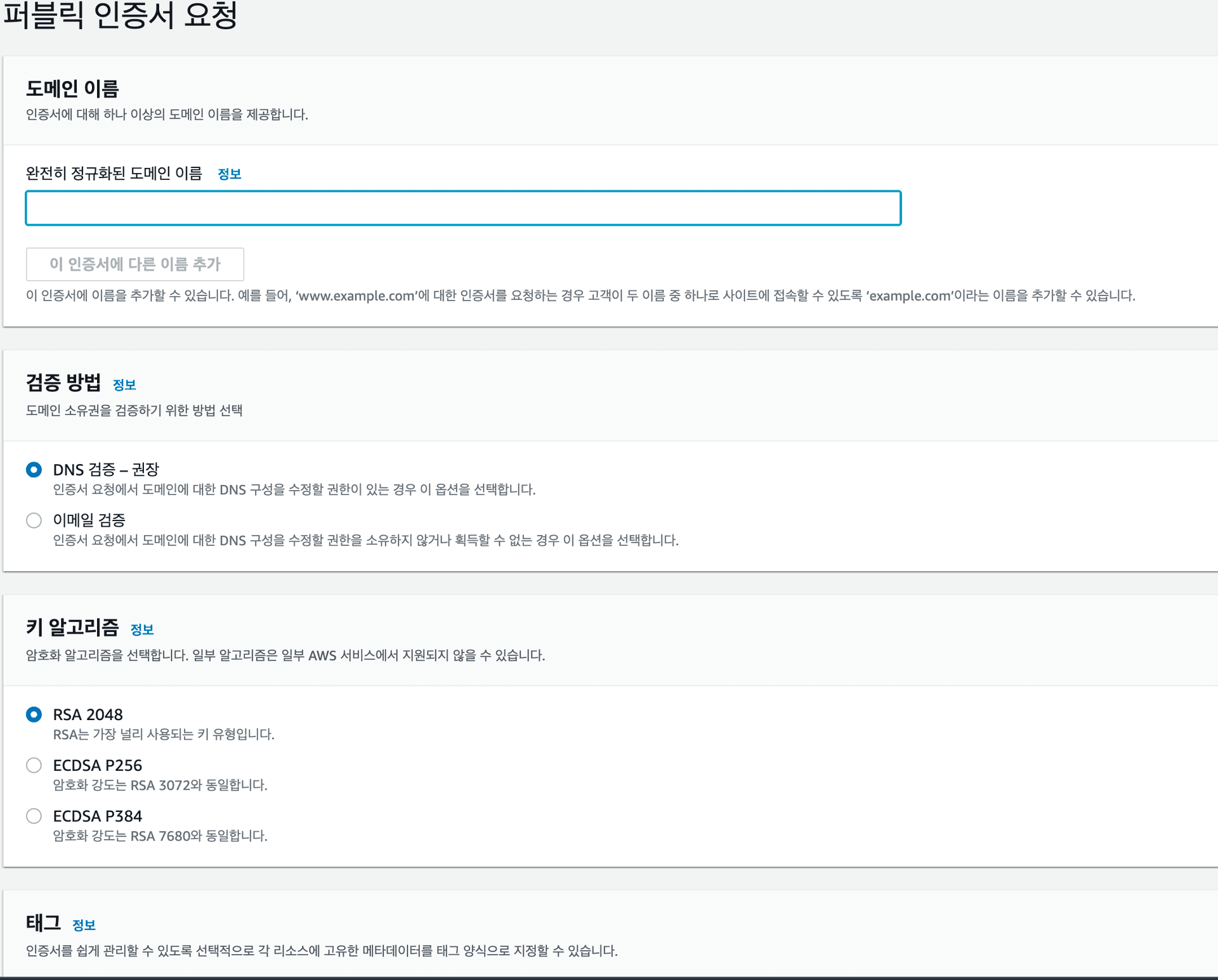 AWS Certificate Manager(ATM) 을 통해 인증서를 요청합니다.