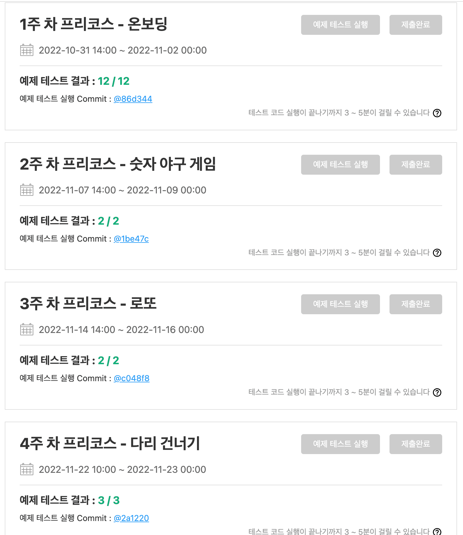 마지막 과제까지 테스트를 통과하고 제출을 완료했습니다.